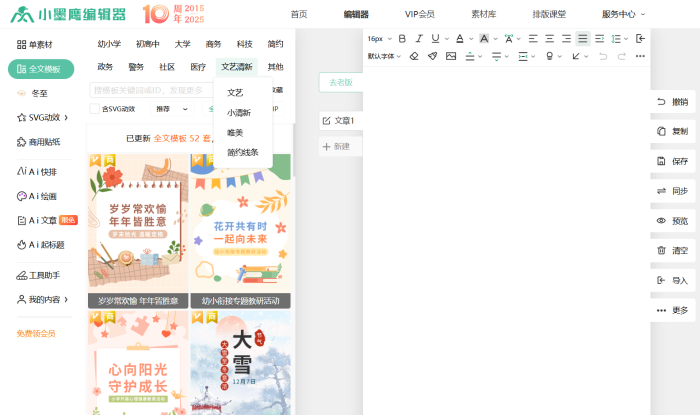 海量免費(fèi)素材: 擁有25萬(wàn)+豐富素材模板,涵蓋標(biāo)題樣式、段落排版、SVG動(dòng)效等多場(chǎng)景需求,選用方便。
